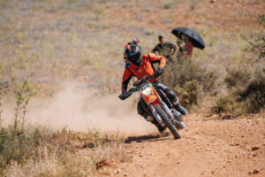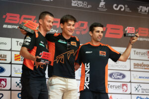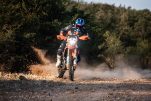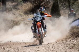 En las categorías dedicadas a las motocicletas tipo Trail, KTM ha participado en ambas categorías con dos modelos de serie con el objetivo de demostrar su capacidad offroad y su resistencia frente a las conocidas duras condiciones de la Baja Aragón, en la que el terreno roto, el polvo y el intenso calor son siempre protagonistas. En la categoría pequeña, Sergi Sangrà ha logrado colocar su KTM 690 Enduro R en la segunda posición final, tras recuperar un precioso tiempo perdido en la primera especial del sábado por culpa de un inesperado inconveniente mecánico que le relegó hasta la cuarta plaza y que pudo solucionarse sin problemas en el tiempo de descanso. En Maxi Trail, Jordi Quer se enfrentaba por primera a vez a una prueba de este tipo y realizó una excelente carrera, rodando siempre en posiciones de podio y siendo solo superado finalmente por una motocicleta de mucha mayor cilindrada que su KTM 890 Adventure R y que jugaba con ventaja en los rápidos tramos de los Monegros, además del inconveniente de tener que superar pilotos que salían por delante suyo, algo que con el conocido polvo en suspensión del terreno aragonés supone toda una proeza.